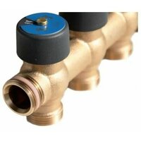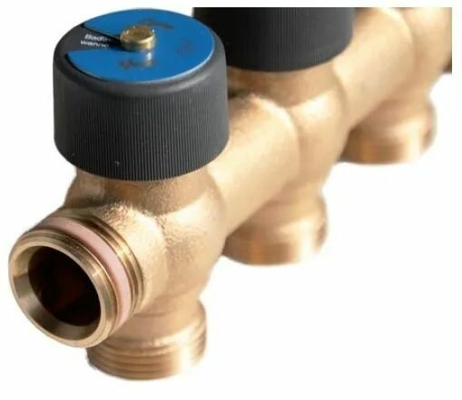 Коллектор с плоским уплотнением, выполнен из инструментальной стали для систем центрального отопления PN 10 с принудительной циркуляцией. Подающая температура до 100 С. Смонтированный коллектор. Подающий и обратный коллектор снабжены воздухоспускной и концевой пробками. Отводы с G 3/4 НР под присоединительные наборы со стяжным кольцом Oventrop. Шумоизоляция крепежных хомутов (поставляются незатянутыми) по DIN 4109. Диаметр входа, дюйм 3/4 Диаметр выхода, дюйм 3/4 евроконус Тип коллектора: с регулировочными вставками Количество контуров: 4