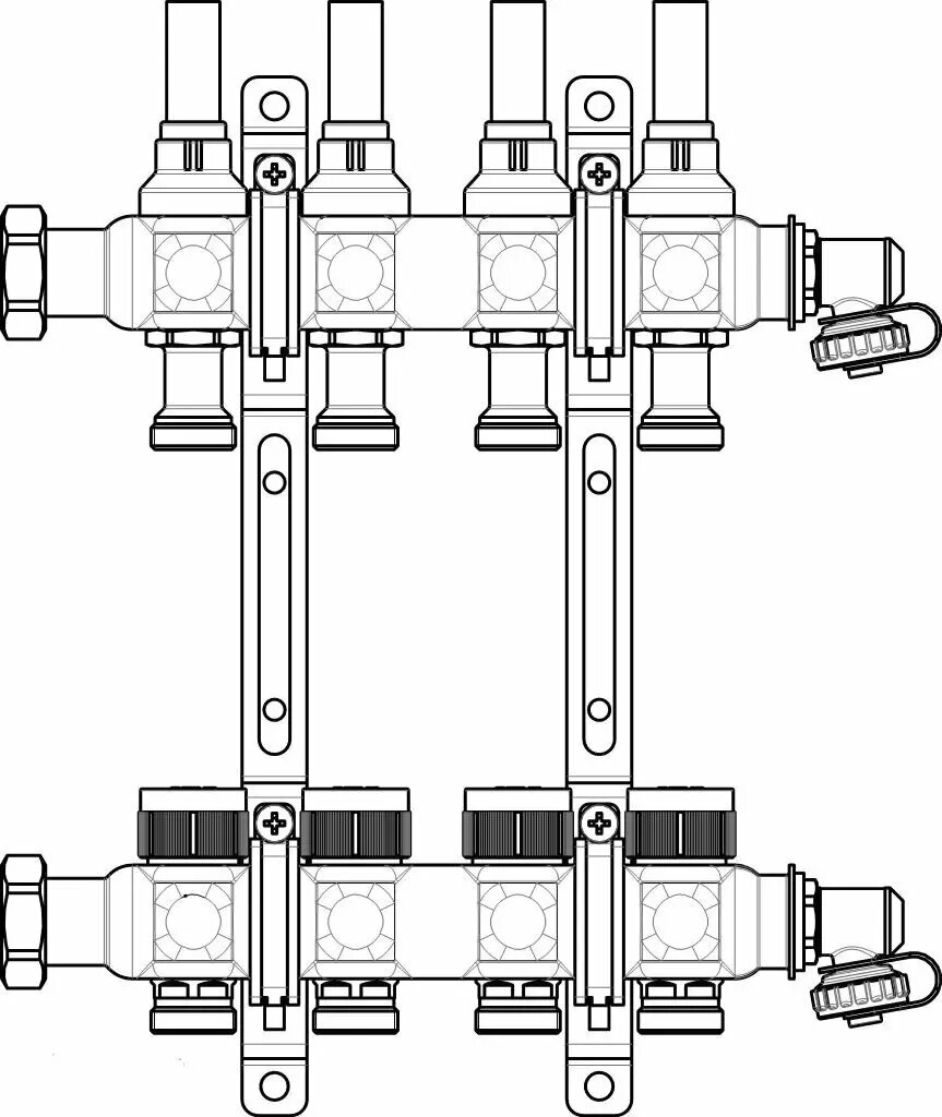 воздухоотводчик, заглушка, кран, кронштейны, расходомер, сливной кран