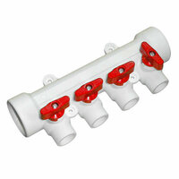 Купить Коллектор полипропилен с шаровыми кранами, заглушкой и воздухоотводчиком 40мм х 4отвода 20 ВР с доставкой по всей России.