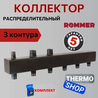 Купить Коллектор распределительный сантехнический для водоснабжения, для отопления из стали 3 контура 1х1,1/4″ RDG-0016-004003 ROMMER с доставкой по всей России.