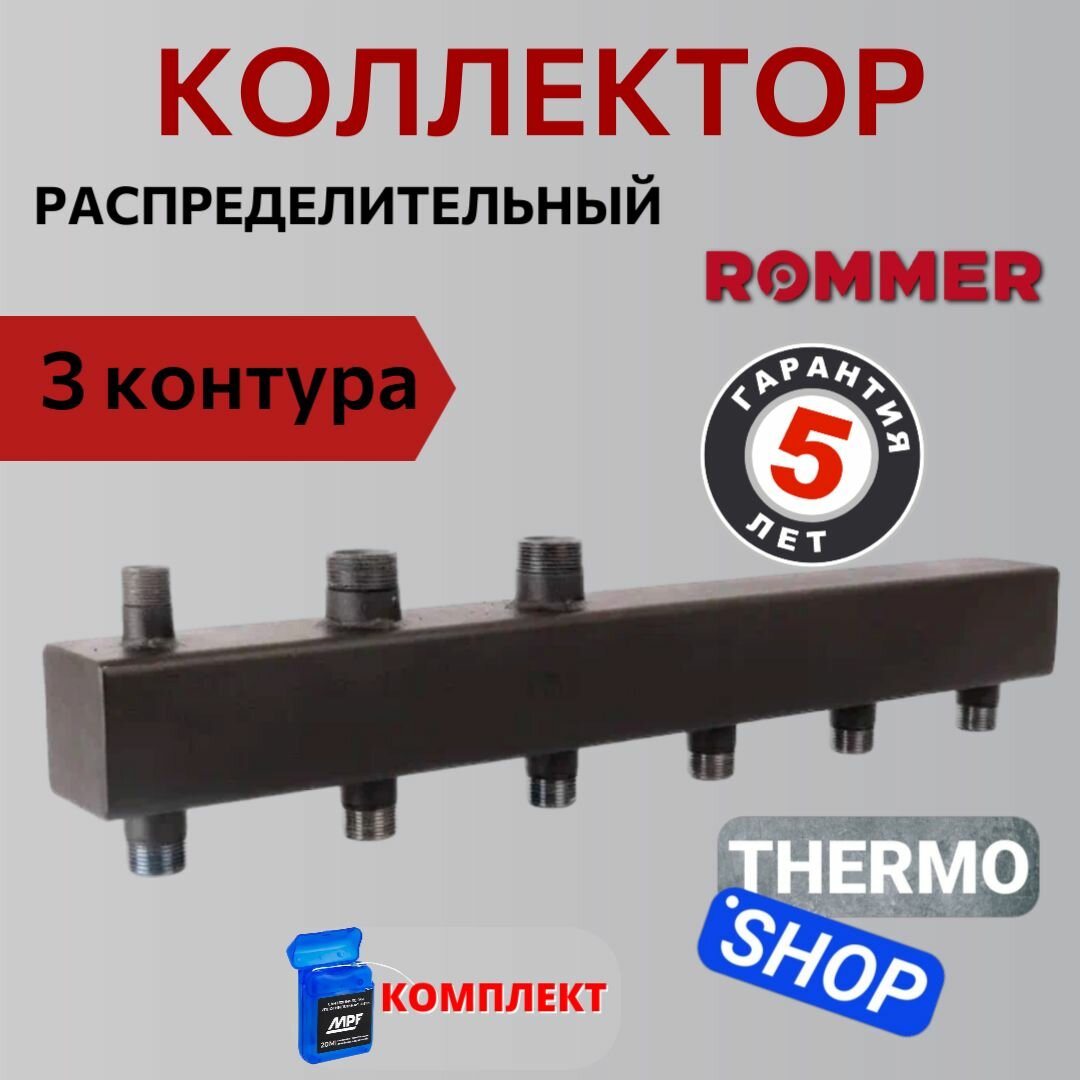 Коллектор распределительный сантехнический для водоснабжения, для отопления из стали 3 контура 1х1,1/4″ RDG-0016-004003 ROMMER: сравнение цен, характеристики, фото, актуальное наличие и цены.