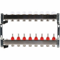 Коллектор Rommer с расходомерами, с клапаном вып. воздуха и сливом 8 вых.: сравнение цен, характеристики, фото, актуальное наличие и цены.