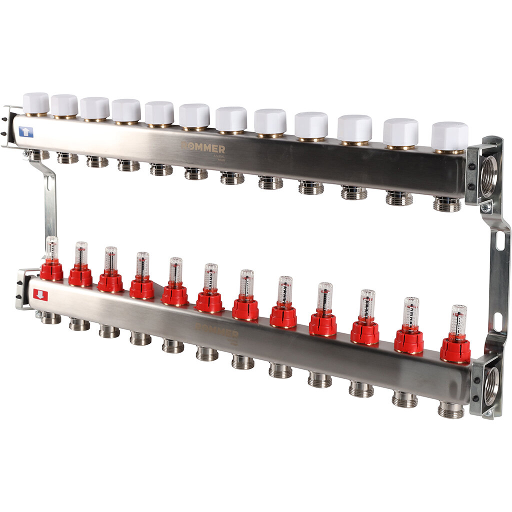 Предназначены для распределения и регулирования потоков теплоносителя в низко- или высокотемпературных системах отопления. Оснащены расходомерами на подающем коллекторе и термостатическими вентилями (с возможностью установки термоэлектрических приводов) на обратном коллекторе. Каждое изделие укомплектовано дренажным клапаном / воздухоотводчиком, который может быть использован для заполнения системы.