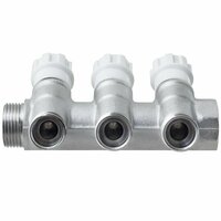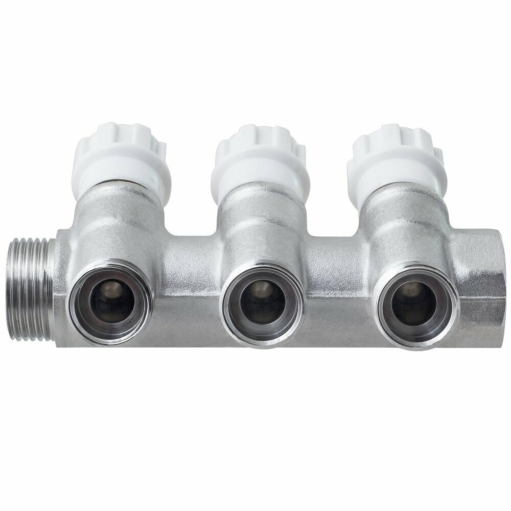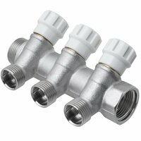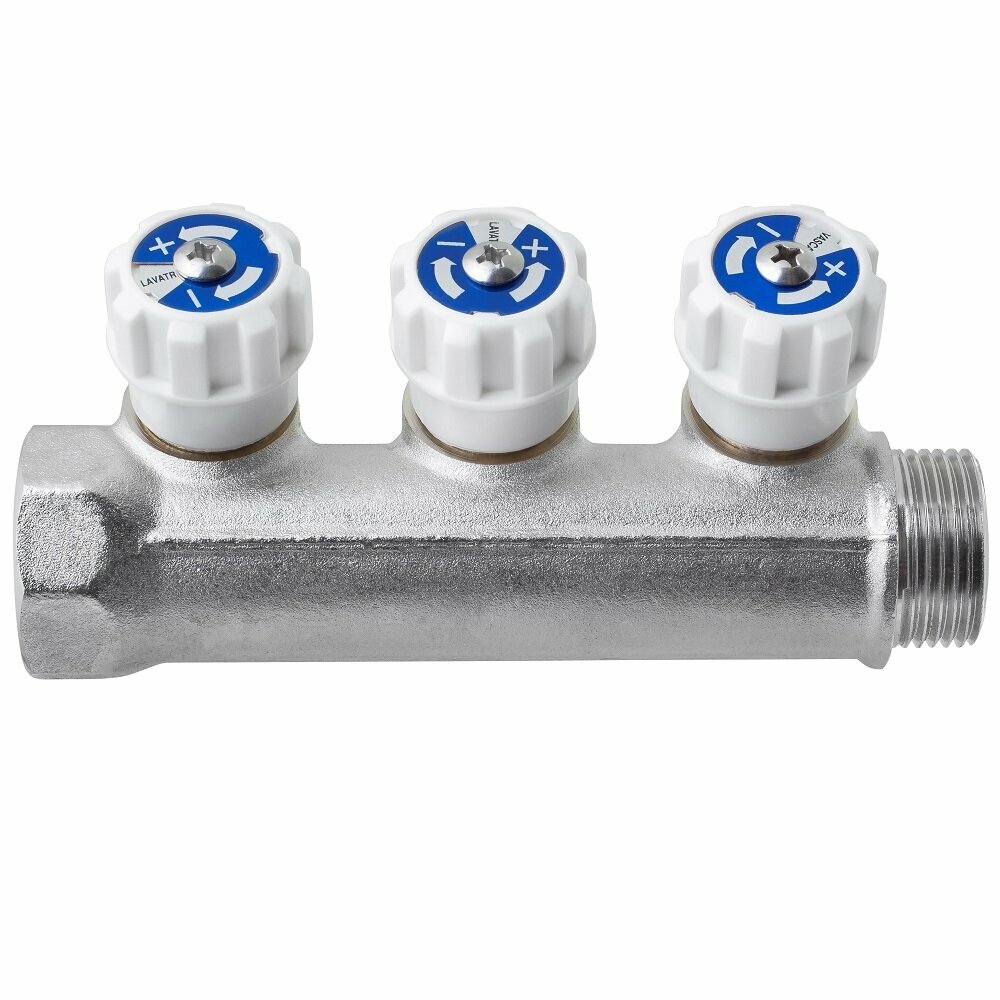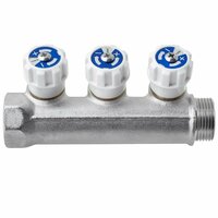 Коллектор с регулируемыми вентилями используется в системах хол/гор водоснабжения, водяного радиаторного или напольного отопления для распределения и регулирования потоков жидкостей в системе, Коллектора имеют различное количество выходов (отводов) в зависимости от своей конфигурации, на каждом из которых установлен вентиль, позволяющий не только открывать и закрывать водяной поток на каждой отдельной ветке, но и регулировать его. Коллектор имеет выходы под евроконус, что позволяет использовать его с м/п трубами. Евроконус покупается отдельно. Коллектор подходит для использования в системах питьевого водоснабжения благодаря минимальному содержанию свинца в сплаве, а также в других средах, неагрессивных к материалам производителя, Для защиты от коррозии и придания изделию эстетичного вида как на наружную, так и на внутреннюю поверхности коллектора нанесено гальваническое никелевое покрытие. Присоединительный размер: 3/4" внутренняя резьба, Ответная часть присоединительного места: 3/4" наружная резьба, Присоединительный размер отводов: 1/2" наружная резьба, Количество отводов: 3 шт, Тип запирающего механизма на отводах: вентиль (возможность потока регулировки и давления), Метод изготовления: горячая штамповка, Материал корпуса: латунь 57, Внешнее покрытие: никелевое гальваническое антикоррозионное, Рабочая температура: от -10°C до +100°C, Рабочее давление: до 6 Bar (0,6 МПа), Условная пропускная способность 2,7 м3/час, Расстояние между осями выходов 36 мм, Рабочая среда: вода, пар, сжатый воздух и другие среды не агрессивные к материалам изделия, Срок эксплуатации: 10 лет, Гарантия: 5 лет.