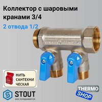 Купить Коллектор с шаровыми кранами 3/4″, 2 отвода 1/2″ (синие ручки) STOUT SMB 6211 341202 с доставкой по всей России.