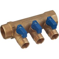 Коллектор Tiemme 1 ВР(г) х 3 выхода 1/2 НР(ш) ЕК х 1 НР(ш) с шаровыми кранами (1820046/1820005)