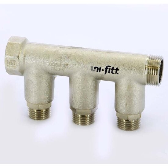 Коллектор Uni-fitt НВ 3/4″ 3 х 1/2″ Н 40 мм с кранами никелированный (420N3230): сравнение цен, характеристики, фото, актуальное наличие и цены.