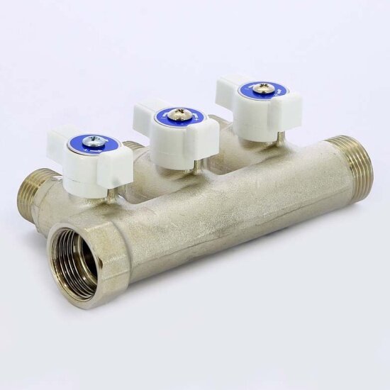 Купить Коллектор Uni-fitt НВ 3/4″ 3 х 1/2″ Н 40 мм с кранами никелированный (420N3230) с доставкой по всей России.
