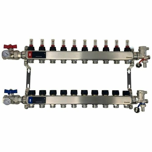 Коллектор WAAG 1″х3/4″, 10 выходов, для теплого пола с термостатическими клапанами, с расходомерами, сталь нержавеющая, в сборе: сравнение цен, характеристики, фото, актуальное наличие и цены.