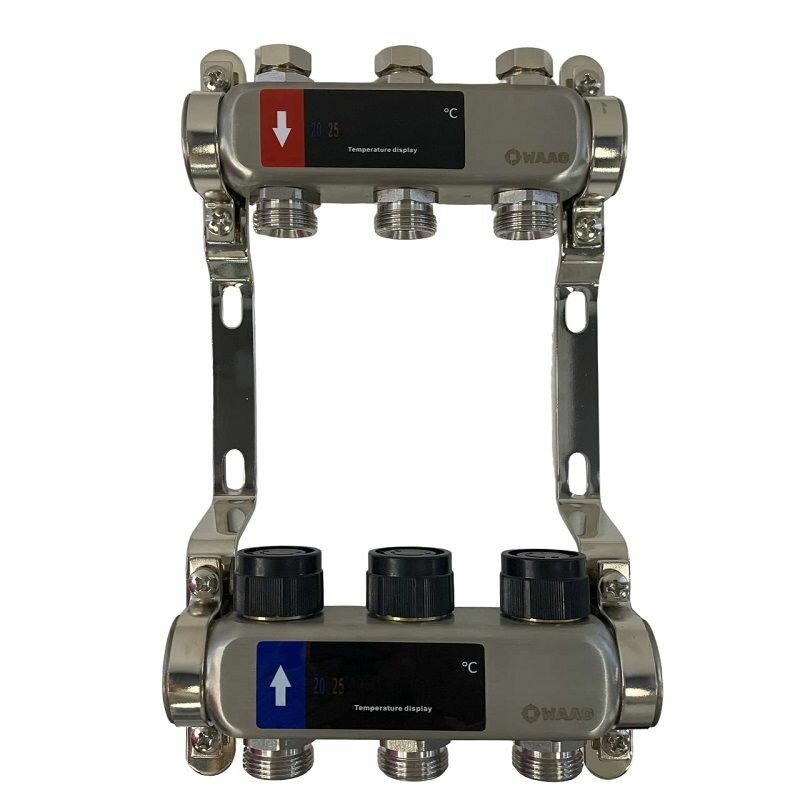 Коллектор WAAG 1″х3/4″, 3 выхода, для радиаторов с термостатическими клапанами и запорными кранами, сталь нержавеющая: сравнение цен, характеристики, фото, актуальное наличие и цены.
