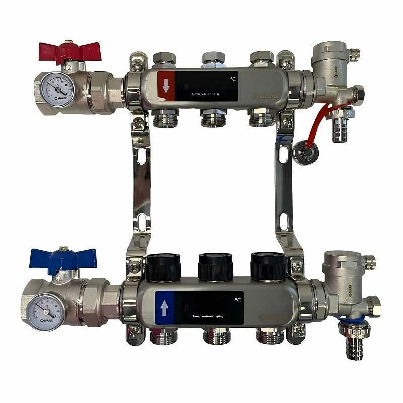 Коллектор WAAG 1″х3/4″, 3 выхода, для радиаторов с термостатическими клапанами и запорными кранами, сталь нержавеющая, в сборе: сравнение цен, характеристики, фото, актуальное наличие и цены.