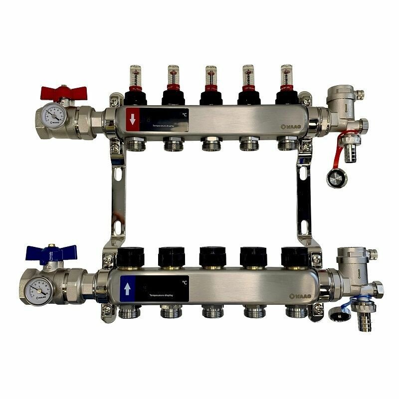 Коллектор WAAG, 5 выходов, для теплого пола с термостатическими клапанами, с расходомерами, сталь нержавейка, 1″х3/4″, в сборе, с креплением: сравнение цен, характеристики, фото, актуальное наличие и цены.