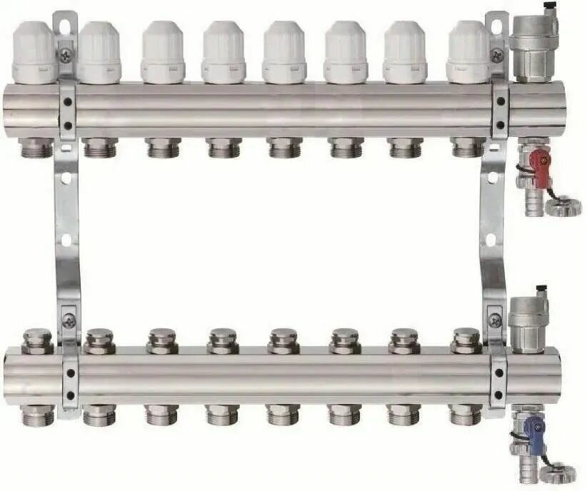 Купить Коллекторная группа 1″-3/4″, 8 выходов латунный корпус без расходомера и кранов TIM KB008 с доставкой по всей России.
