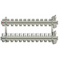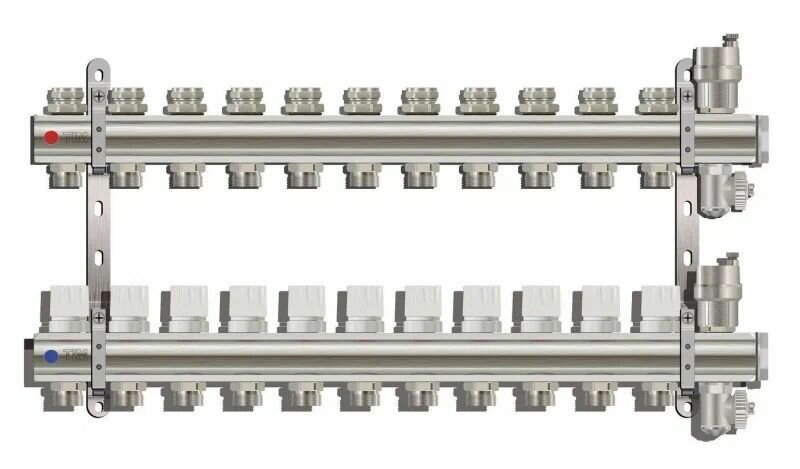 Применение коллекторов с регулирующими вентилями позволяет регулировать температуру каждого радиатора. При установке на коллектор термостатических головок, сервоприводов, осуществляется необходимое распределение теплоносителя по радиаторов в автоматическом режиме. Технические характеристики коллектора TIM для отопления на 12 контуров: