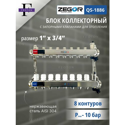 Коллекторная группа 8 выходов 1″х 3/4″ с Запорными клапанами ZEGOR (нерж. сталь): сравнение цен, характеристики, фото, актуальное наличие и цены.