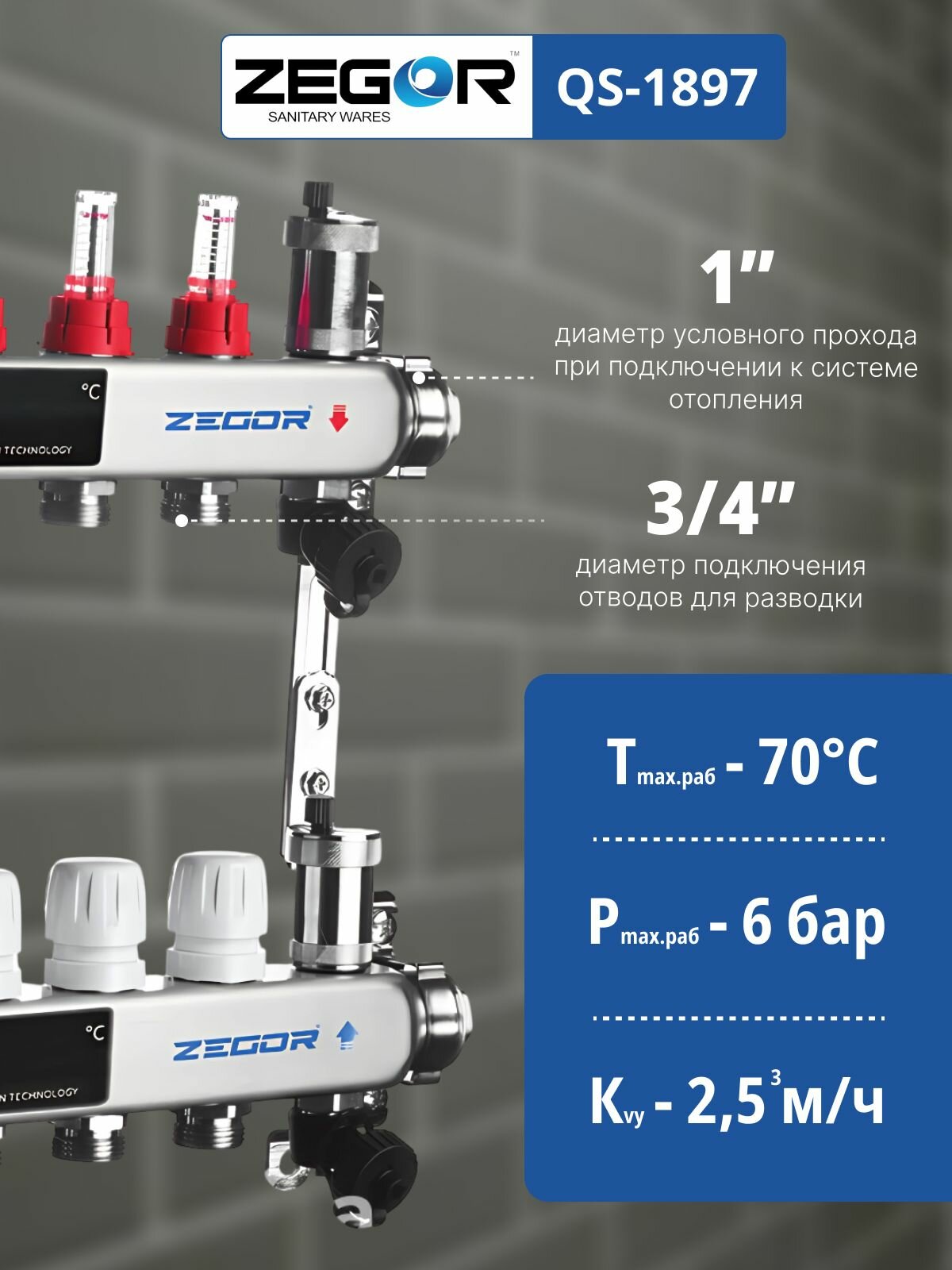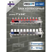 Коллекторная группа 9 выходов 1″х 3/4″ с Расходомерами ZEGOR (нерж. сталь): сравнение цен, характеристики, фото, актуальное наличие и цены.