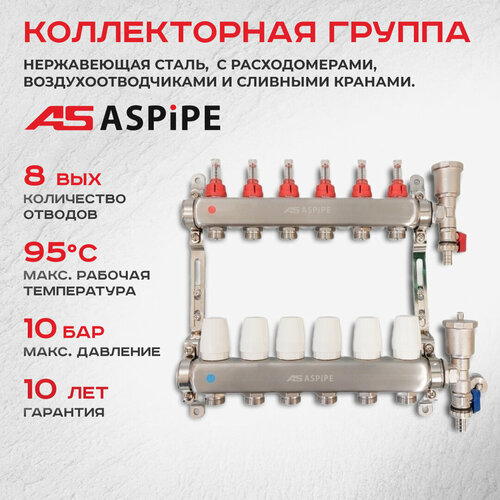 Коллекторная группа ASPiPE (AS-K001) 1″x3/4″ на 8 выходов из нержавеющей стали с расходомерами, воздухоотводчиками и сливными кранами.: сравнение цен, характеристики, фото, актуальное наличие и цены.