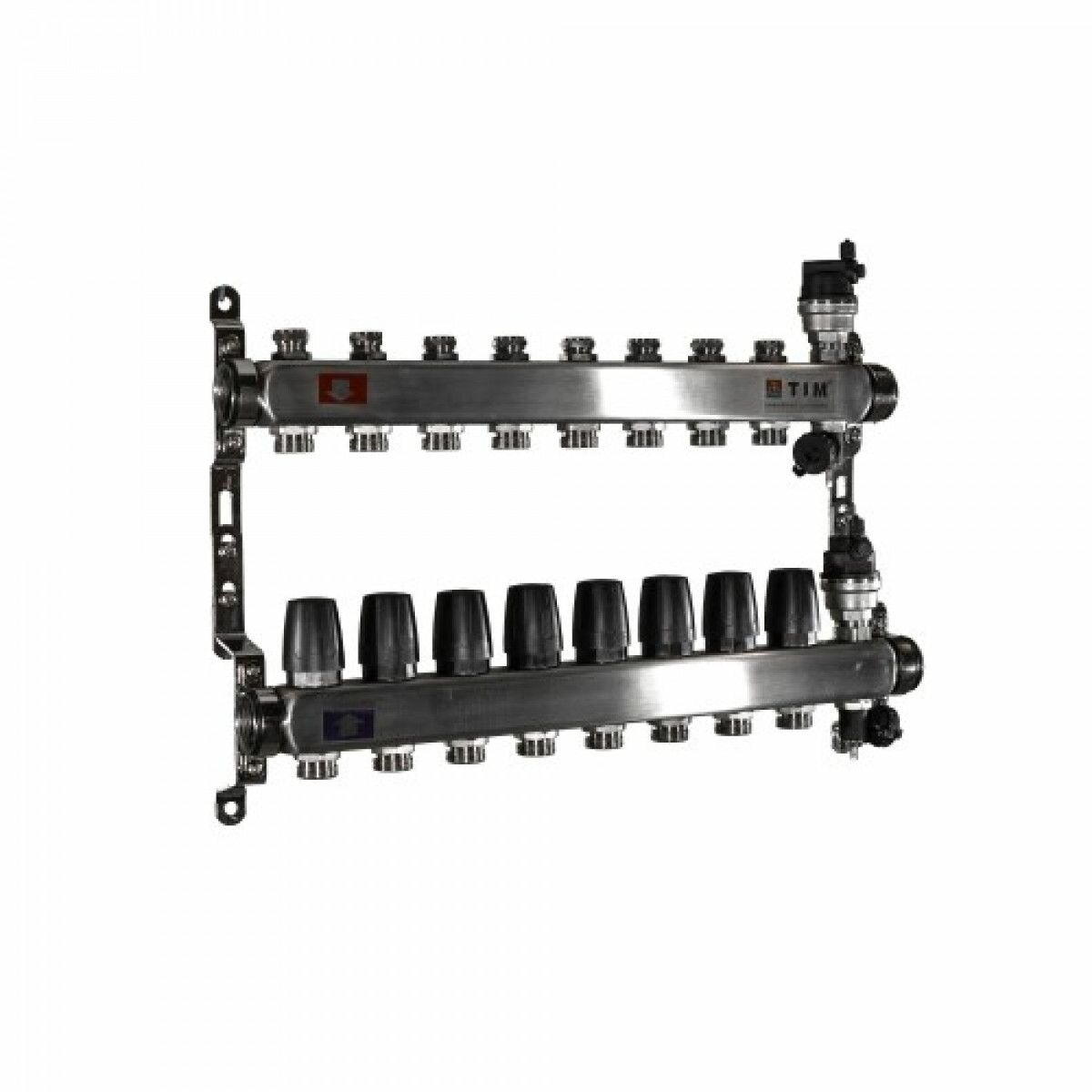 Купить Коллекторная группа Tim (KBS5007) 1″ ВР-ВР, 7 отводов 3/4″, воздухоотводчик, сливной кран с доставкой по всей России.