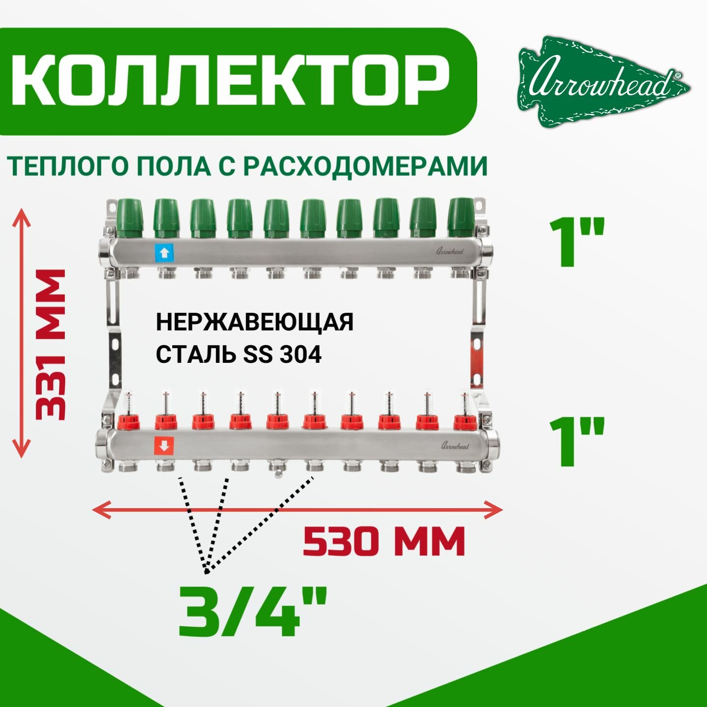 Коллекторная группа для теплого пола Arrowhead 10 выходов с расходомерами ( Оригинальный): сравнение цен, характеристики, фото, актуальное наличие и цены.
