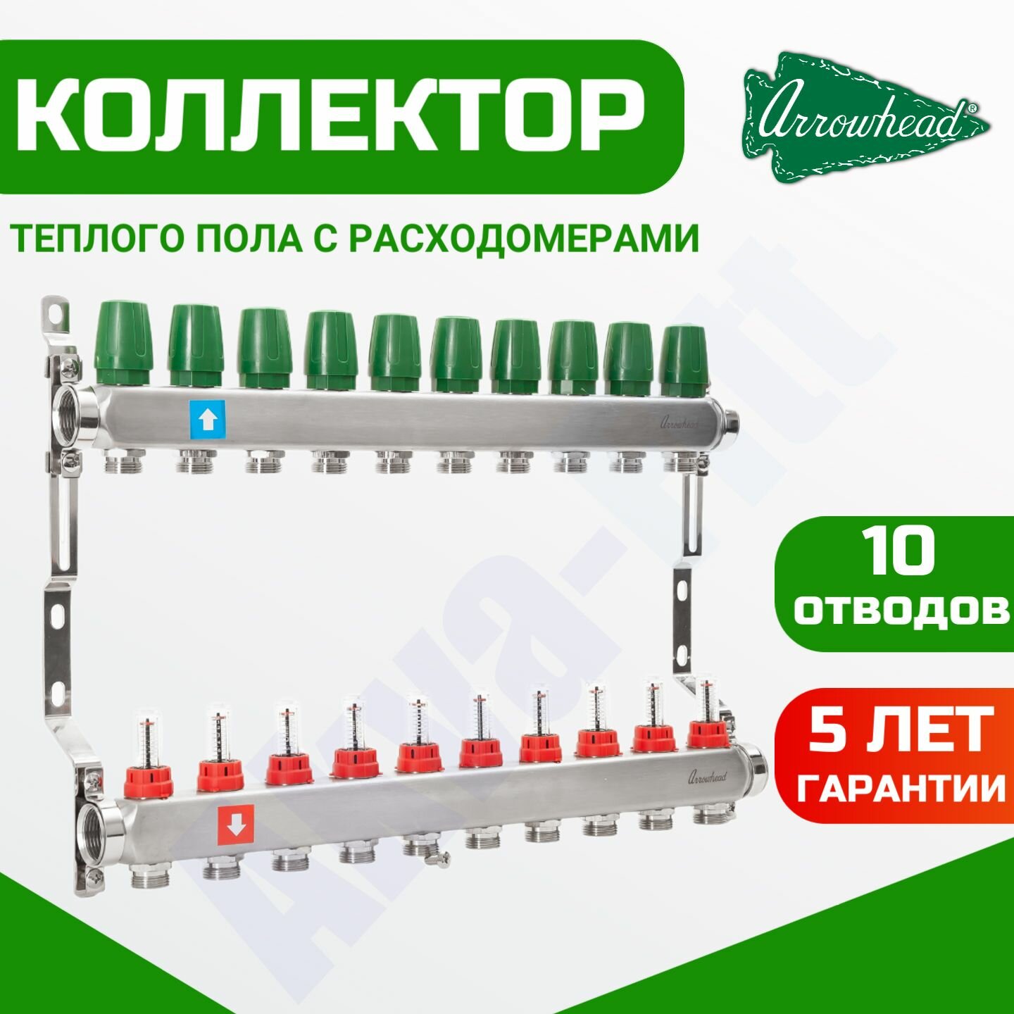 Купить Коллекторная группа для теплого пола Arrowhead 10 выходов с расходомерами ( Оригинальный) с доставкой по всей России.