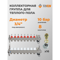 Коллекторная группа для теплого пола TAEN 1×3/4×8 с расходомерами, автоматическим воздухоотводчиком + евроконус 16 шт: сравнение цен, характеристики, фото, актуальное наличие и цены.