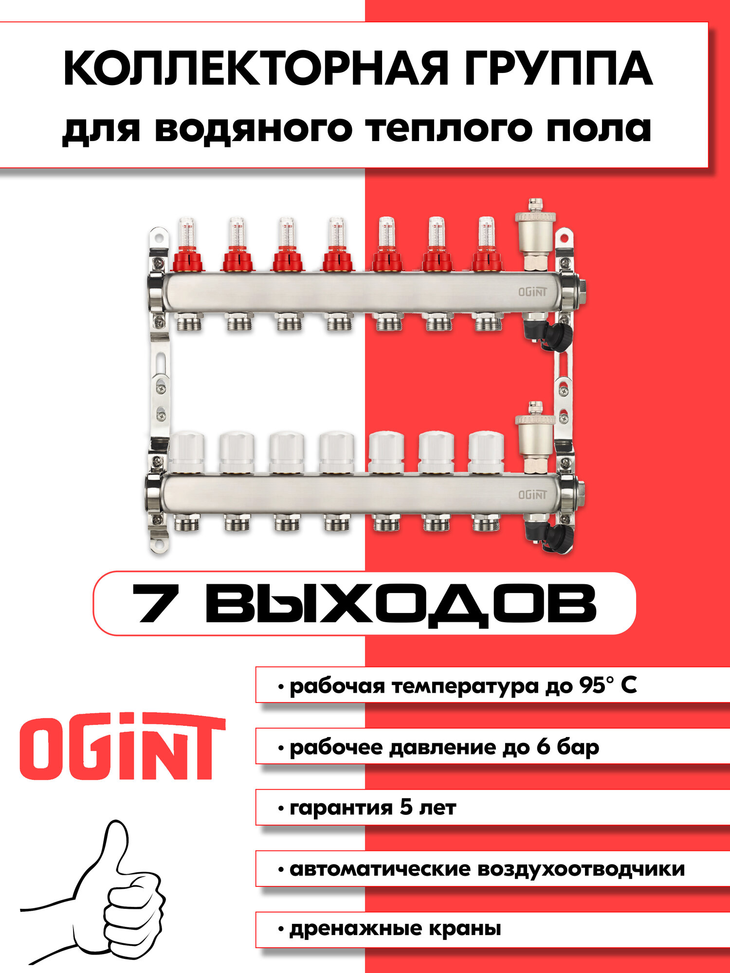 Купить Комплект для водяного теплого пола на 7 контуров (до 95 кв. м.) Ogint с доставкой по всей России. Комплект для водяного теплого пола на 7 контуров (до 95 кв. м.) Ogint: сравнение цен, характеристики, фото, актуальное наличие и цены.