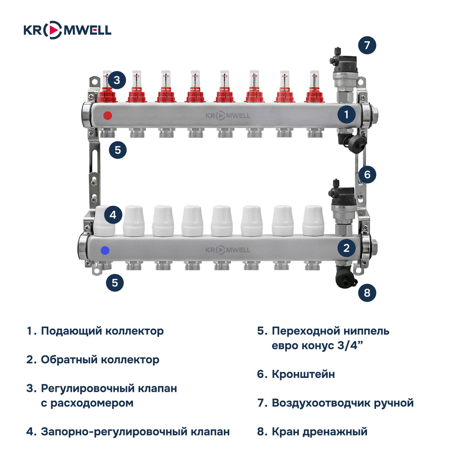 Купить Коллекторная группа Kromwell с расходомерами на 8 контуров, 1″х3/4″ с доставкой по всей России. Коллекторная группа Kromwell с расходомерами на 8 контуров, 1″х3/4″: сравнение цен, характеристики, фото, актуальное наличие и цены.