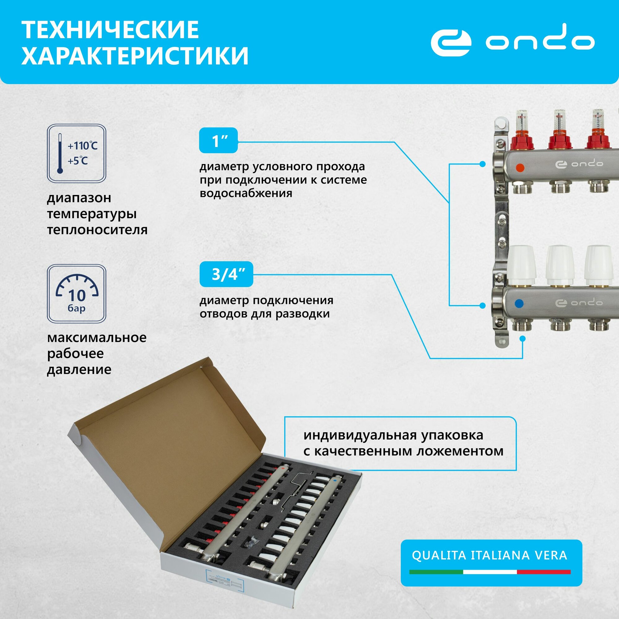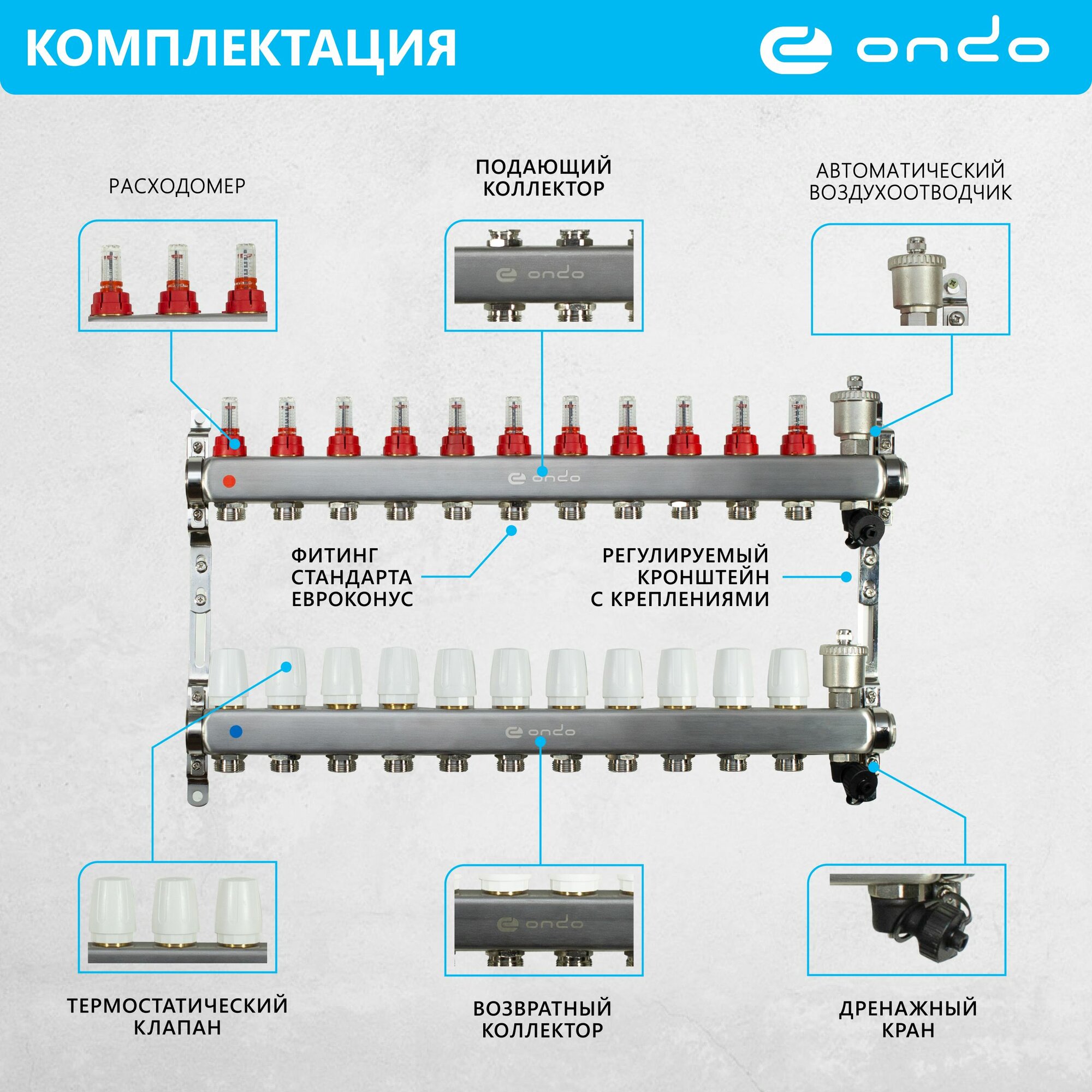 Коллектор для теплого пола на 11 выходов + расходомеры + термостатические клапаны + воздухоотводчик ONDO: сравнение цен, характеристики, фото, актуальное наличие и цены.