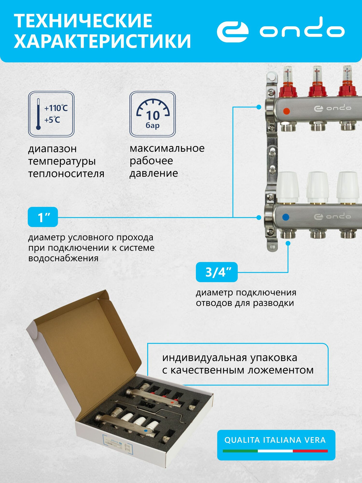 Коллектор для теплого пола на 3 выхода + расходомеры + термостатические клапаны + воздухоотводчик ONDO: сравнение цен, характеристики, фото, актуальное наличие и цены.