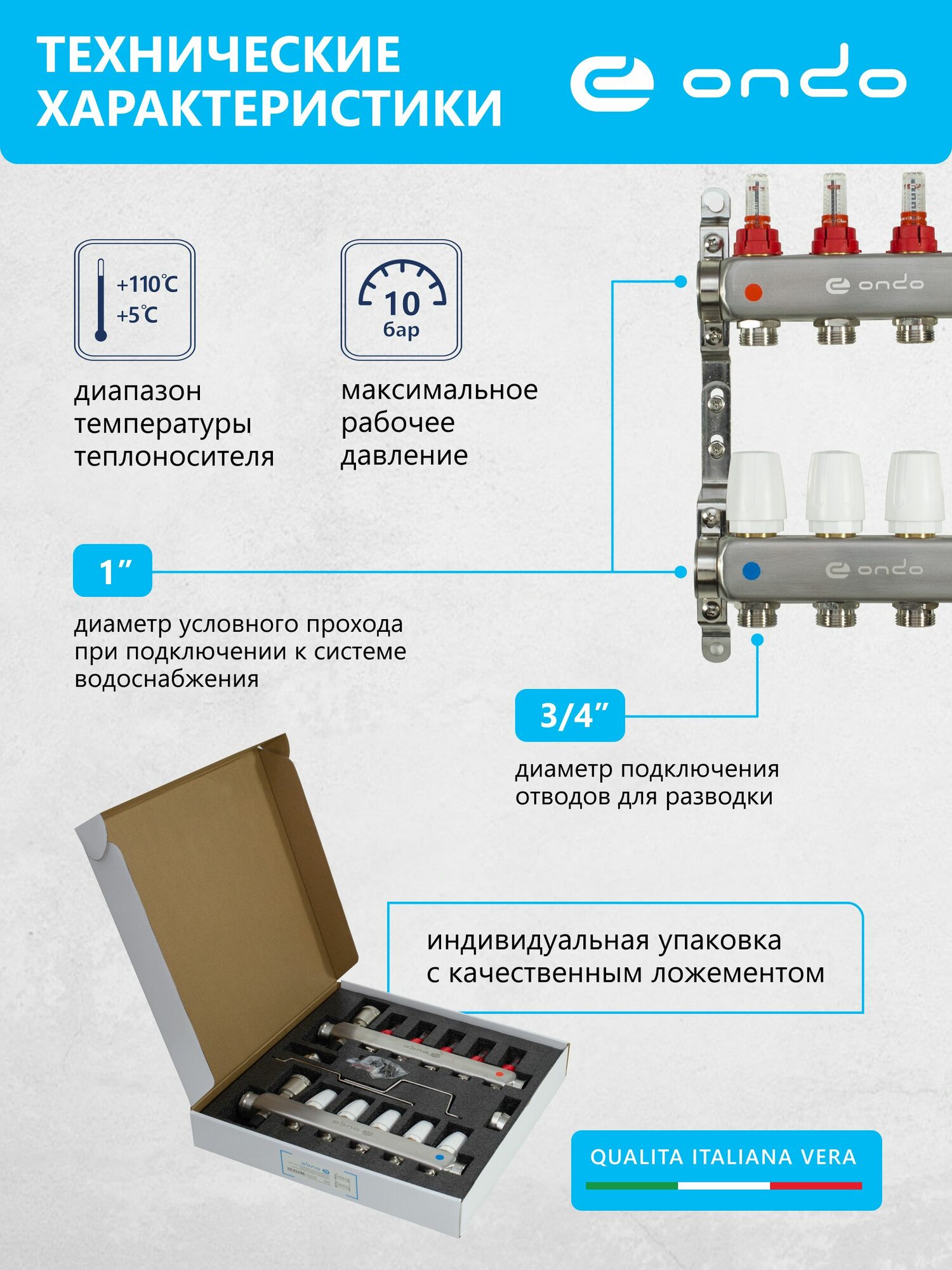 Коллектор для теплого пола на 5 выходов + расходомеры + термостатические клапаны + воздухоотводчик ONDO: сравнение цен, характеристики, фото, актуальное наличие и цены.