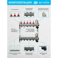 Купить Коллектор для теплого пола на 5 выходов + расходомеры + термостатические клапаны + воздухоотводчик ONDO с доставкой по всей России.