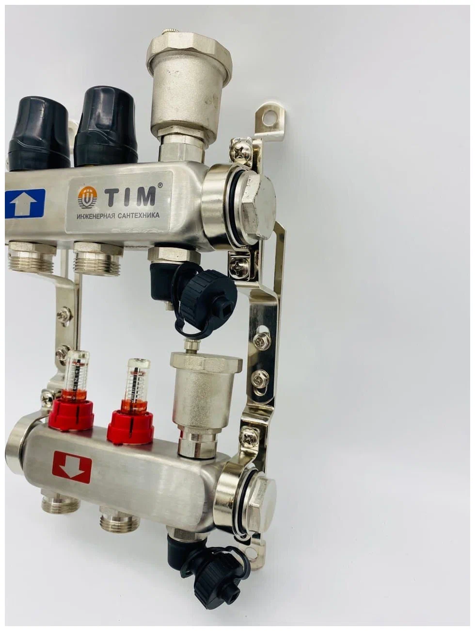 | Подробная комплектация | Коллекторная группа состроит из: Напорный коллектор с расходомерами - 1 шт. Обратный коллектор с запорными вентилями - 1 шт. Дренажные клапаны - 2 шт. Автоматический воздухоотводчик - 2 шт. Цельнометаллический кронштейн - 2 шт. Заглушки - 2 шт. |