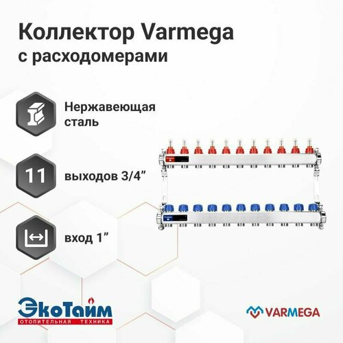 Распределительный коллектор (группа) с расходомерами Varmega VM15111 ВР 1″, на 11 контуров 3/4″ EK, нержавеющая сталь: сравнение цен, характеристики, фото, актуальное наличие и цены.