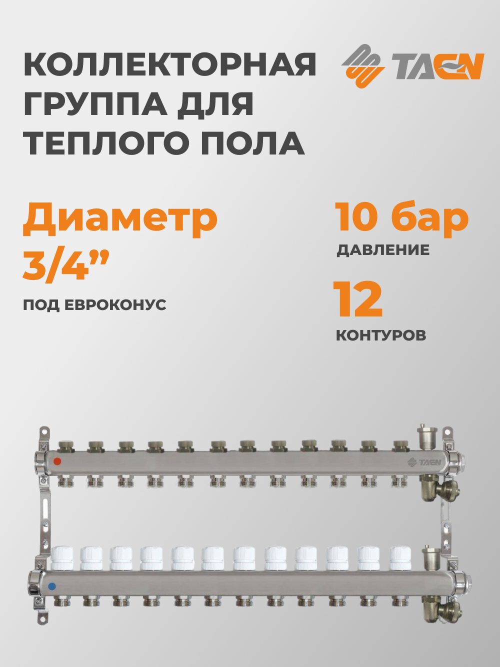 Коллекторная группа TAEN 1×3/4×12 выходов для систем отопления (регулирующие клапаны, автоматический воздухоотводчик): сравнение цен, характеристики, фото, актуальное наличие и цены.