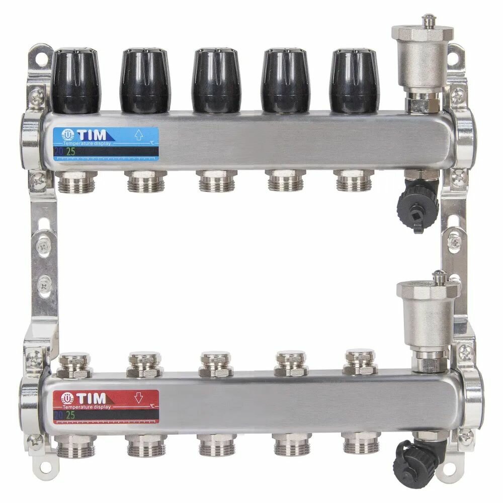 Коллекторная группа TIM KBS5005. 5 контуров. Из нержавеющей стали, для радиаторного отопления без расходомеров 1″ — 3/4″: сравнение цен, характеристики, фото, актуальное наличие и цены.