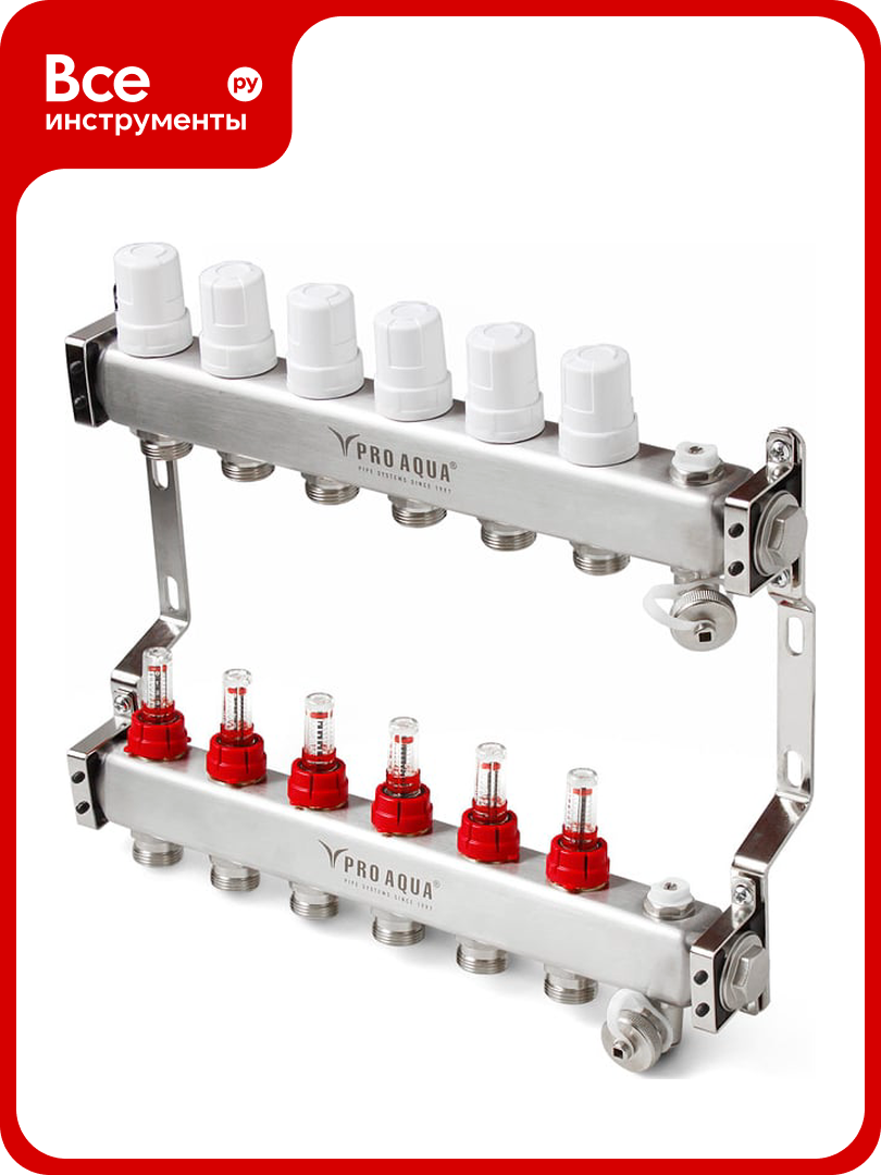 Коллекторный блок с расходомерами PRO AQUA 6 выходов, 380 мм, 1 x 3/4 V500MB.06b: сравнение цен, характеристики, фото, актуальное наличие и цены.
