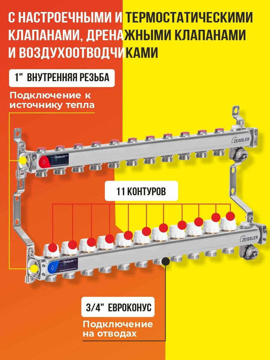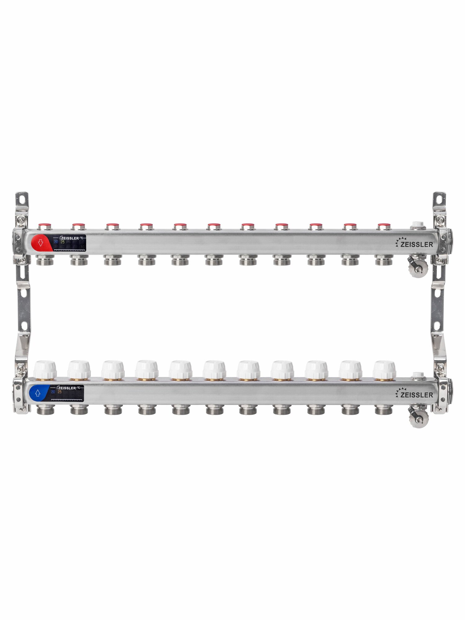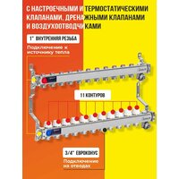 Коллекторный блок ZEISSLER на 11 выходов из нержавеющей стали с настроечными и термостатическими клапанами, дренажными клапанами и воздухоотводчиками 1*3/4 ЕК: сравнение цен, характеристики, фото, актуальное наличие и цены.