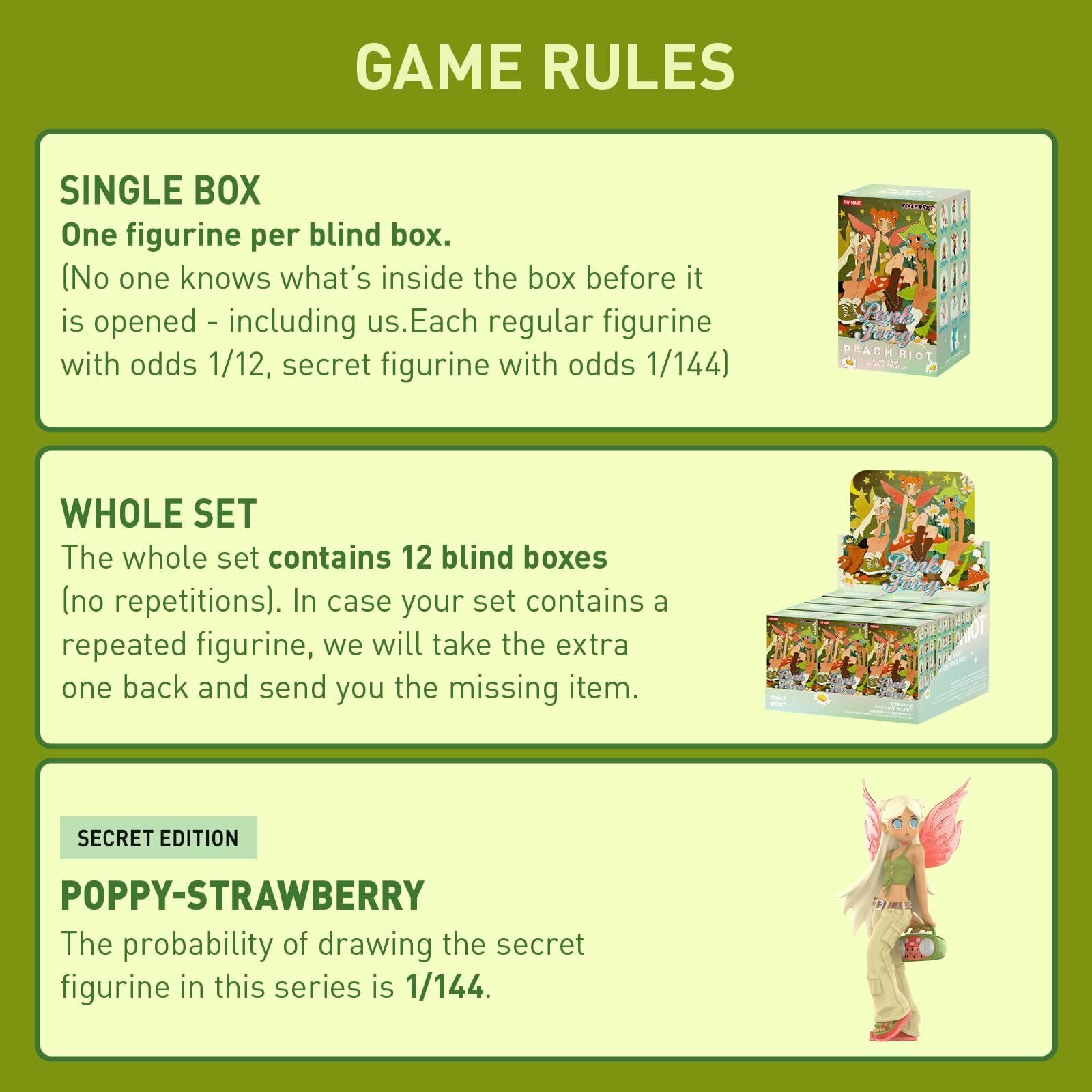 Ручная работа из серии Peach Riot Punk Fairy от : В коробке для штор собраны случайные поделки из определенной серии. Каждое закрытое поле содержит только один символ. Никто, включая нас, не знает, что находится внутри. Серия содержит 12 кукол-слепышей, одна из которых может быть секретной версией.