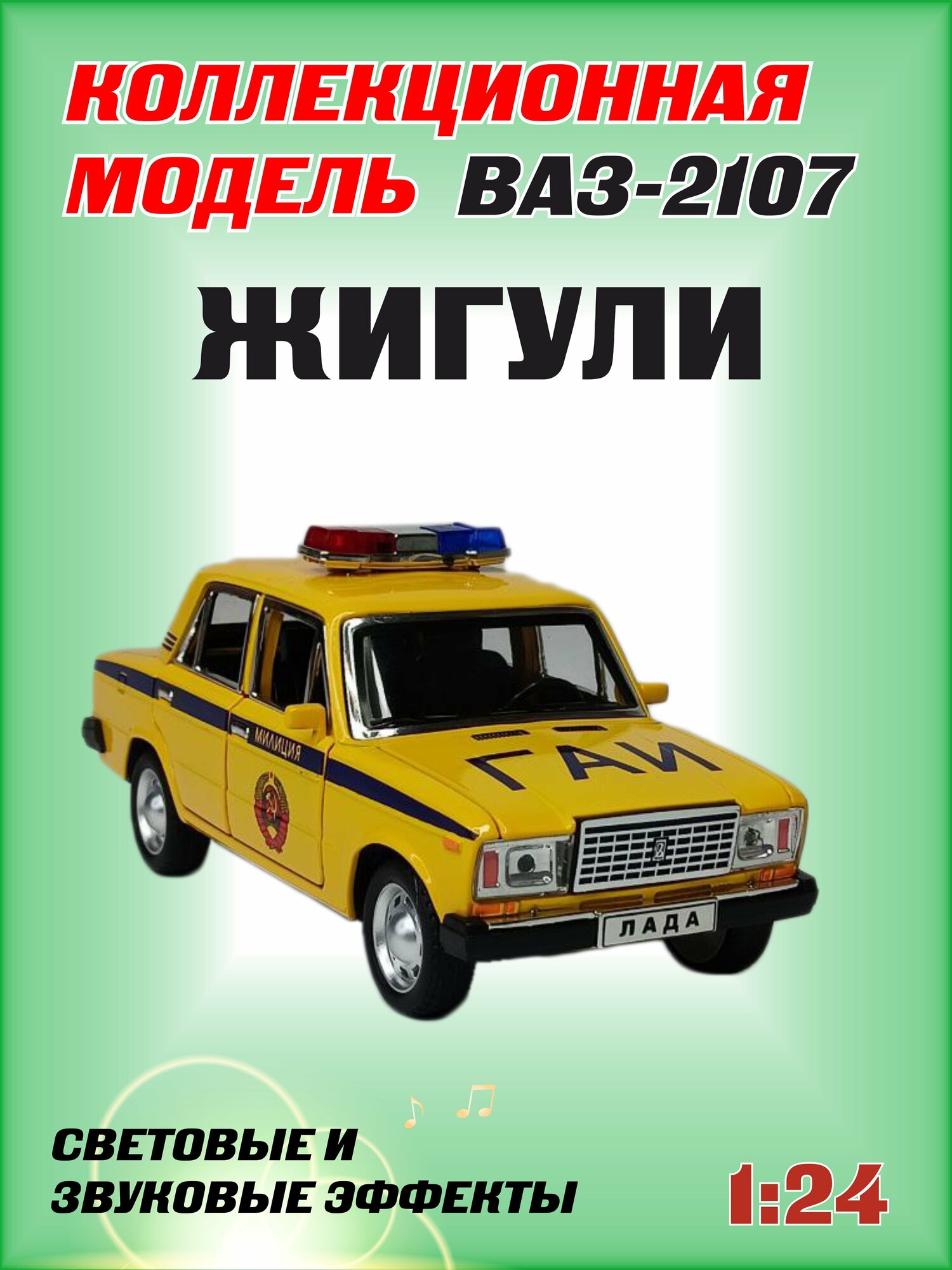 Коллекционная машинка игрушка металлическая Жигули ВАЗ 2107 для мальчиков масштабная модель 1:24 желтая ГАИ: сравнение цен, характеристики, фото, актуальное наличие и цены.