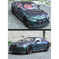 BMW G82 — второе поколение BMW M4. Было представлено в сентябре 2020 года. Одновременно с запуском новой модели с производства была снята предыдущая F82Автомобили BMW M4 серии Coupé предлагают прекрасное сочетание эстетики, характера и типичной для серии М спортивности. Масштабированная модель автомобиля станет прекрасным подарком для маленького "автолюбителя". Модели изготовлены из металла с некоторыми пластиковыми аксессуарами, оснащена инерционным механизмом, при нажатии на капот активируются световые эффекты (свет передних фар) и звуковые эффекты (звук мотора). Высокая степень детализации обеспечивает максимальное сходство с оригиналом. Батарейки: 3 х LR44/AG13 (1,5V) в комплекте. Хороший подарок ребенку или любителю данной модели!