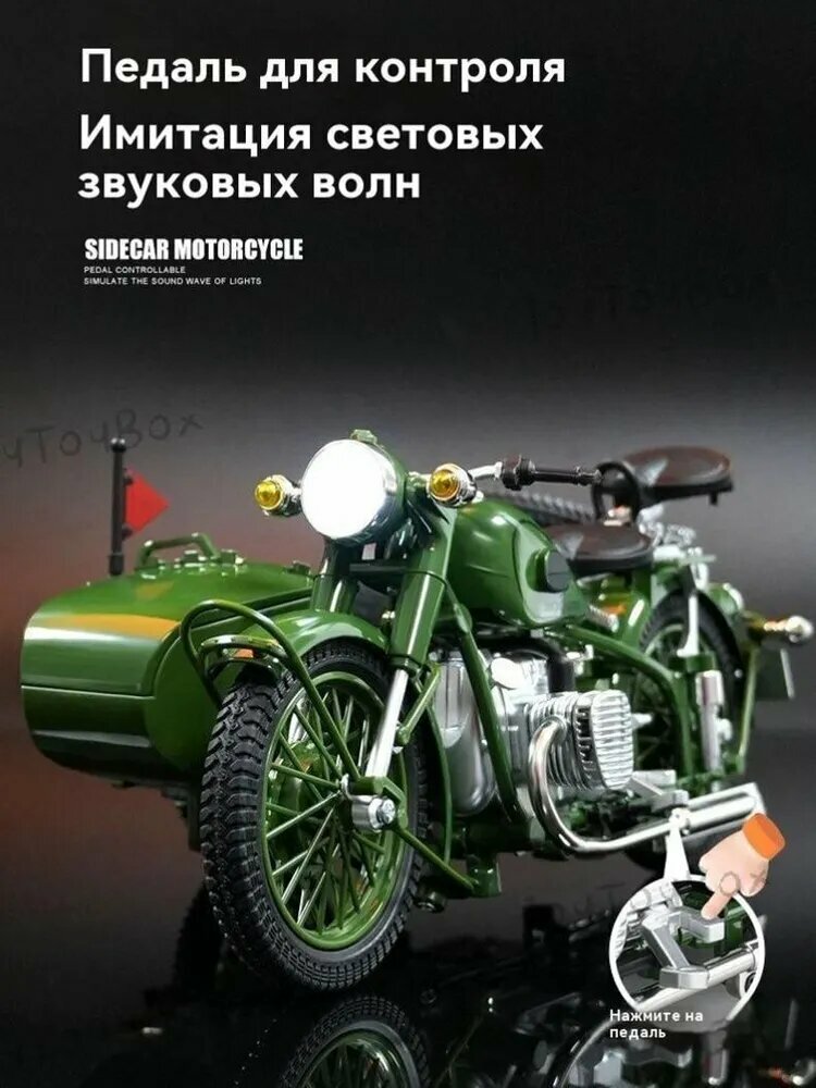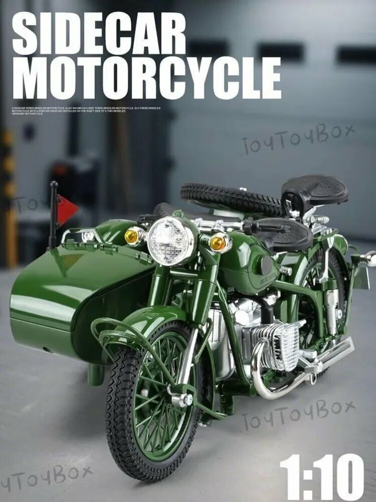 Коллекционная модель мотоцикла с коляской из сплава 1:10, со светом и звуком выхлопа, открывающимися деталями: сравнение цен, характеристики, фото, актуальное наличие и цены.