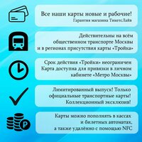 Коллекционная карта «Тройка» ограниченного тиража специального дизайна. Действительна в Москве, Московской области и в регионах присутствия карты "Тройка". Официальный выпуск Московского метрополитена. Карта новая, рабочая. Без баланса, готова к использованию по прямому назначению. Карта действует бессрочно.