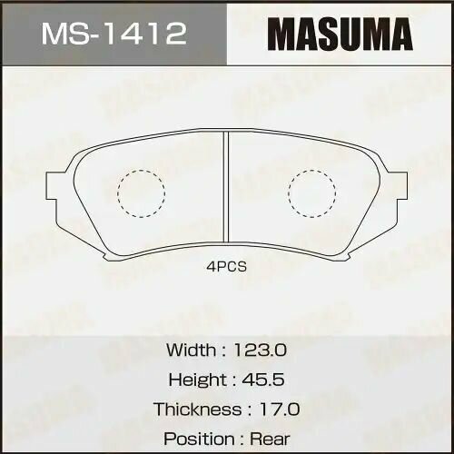 Фрикционный материал дисковых колодок Masuma MS1412 – итог 10-летних исследований разных составов и соотношений компонентов. В результате компании удалось добиться оптимальной эффективности, термической стабильности в разных режимах работы, низкого уровня шума и умеренного образования пыли.