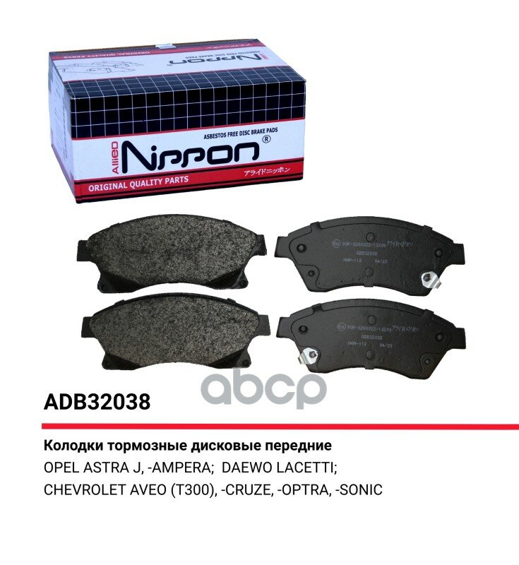 Колодки торм. передние CHEVROLET Cruze (R15) /OPEL ASTRA J 08 ALLIED NIPPON арт. adb32038: сравнение цен, характеристики, фото, актуальное наличие и цены.