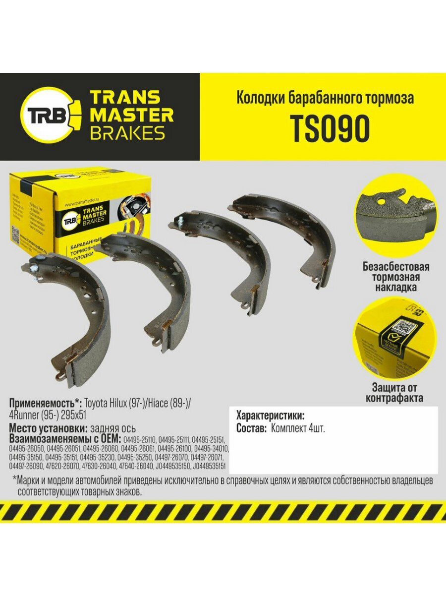 Колодки тормозные барабанные задние TRANSMASTER TS090 для а/м Toyota Hilux, Hiace, 4Runner, Volkswagen Taro: сравнение цен, характеристики, фото, актуальное наличие и цены.