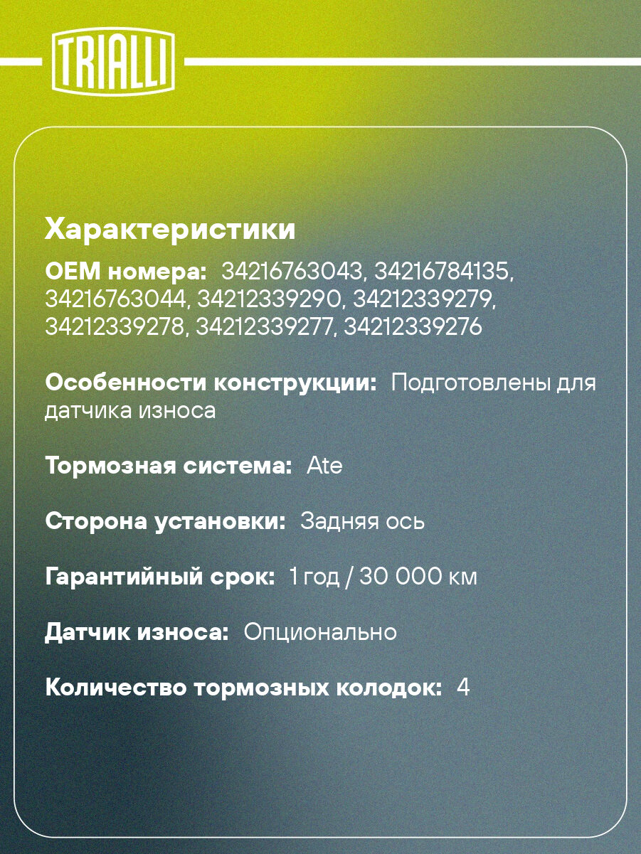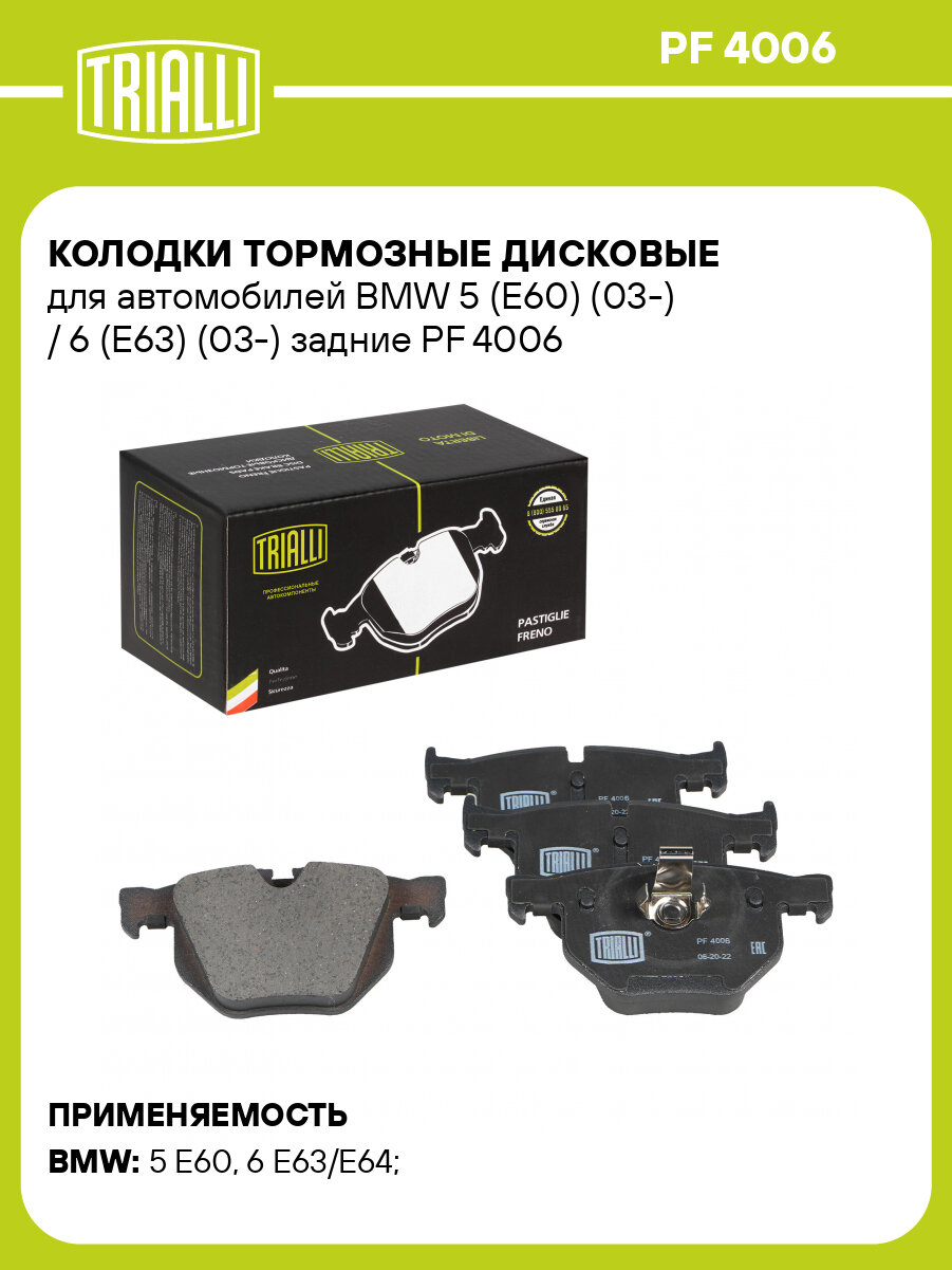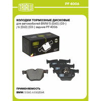 Колодки тормозные дисковые для автомобилей BMW 5 (E60) (03-) / 6 (E63) (03-) задние PF 4006 TRIALLI: сравнение цен, характеристики, фото, актуальное наличие и цены.