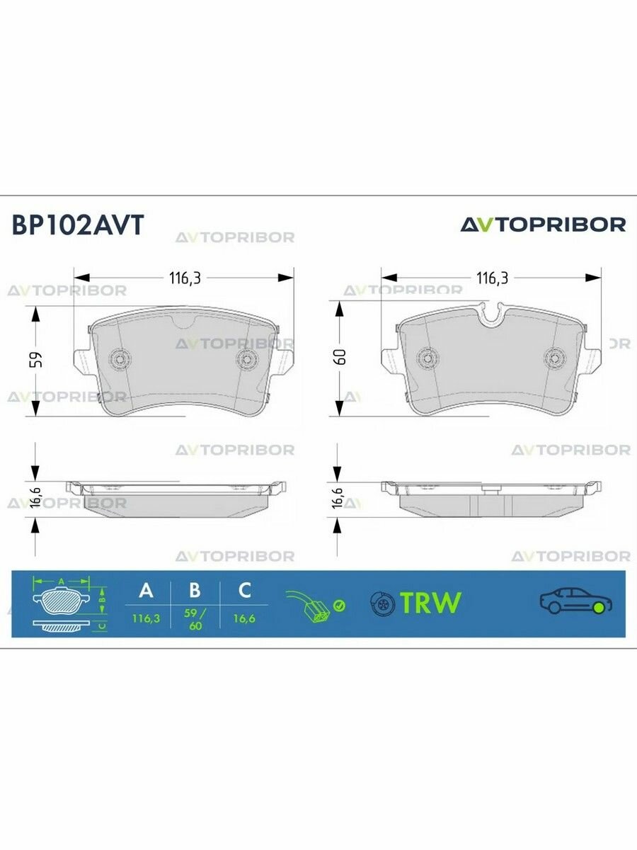 Колодки тормозные дисковые передние с датчиком для а/м AUDI А4, А5, Q5; PORSCHE Macan, AVTOPRIBOR BP102AVT: сравнение цен, характеристики, фото, актуальное наличие и цены.