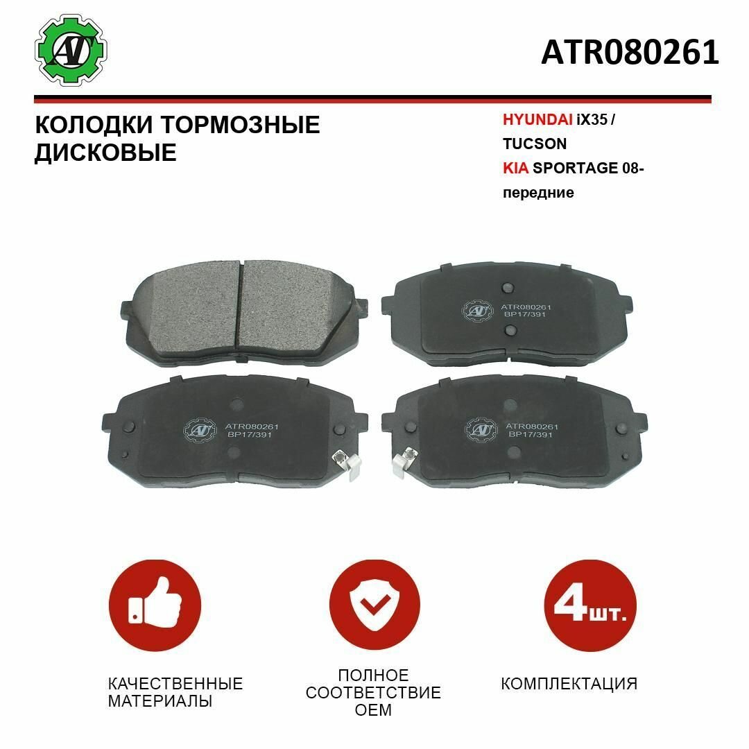 Колодки тормозные AT производится на современных автоматизированных линиях производства с применением последних технологий, что гарантирует минимальное значение допусков, полное соответствие необходимым размерам и беспроблемную установку. Колодки тормозные AT соответствует строгим требованиям качества производителей, служит полноценной заменой штатным тормозным колодкам. Для того что бы узнать подойдет ли запчасть к конкретно вашему автомобилю, вам необходимо узнать OEM номер заводской детали вашего автомобиля и сверить ее с OEM номером указанным в описании данной карточки товара. Подходит для автомобилей: HYUNDAI iX35/TUCSON/KIA SPORTAGE 08- перед. к-т; OEM и кросс-номера / аналоги:581010ZA00, 581011DA00, 581011DE00, 581012SA50, 581012SA51, 581012SA70, 581012YA00, 581012YA50, ATR080261, BP2035, GDB3461, KT1196S, KT3461STD, KT3461T, MPK34, MPK34NS, S581012SA70, SP1196