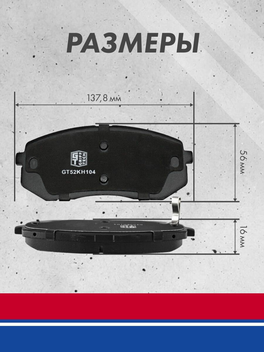 Колодки тормозные передние GRIFF TECH KIA Sportage/HYUNDAI ix35/i40/КИА Спортиэйдж Хендай Соната 581012SA50 581013SA30: сравнение цен, характеристики, фото, актуальное наличие и цены.