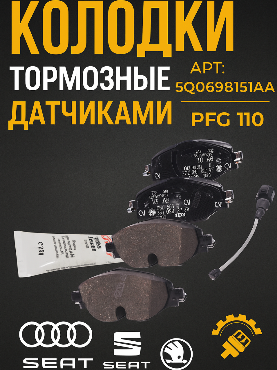 Колодки тормозные передние с датчикаами VAG на Audi ауди Seat сеат Skoda шкода VW АРТ: 5Q0698151AA_(PFG110) На подарку: сравнение цен, характеристики, фото, актуальное наличие и цены.